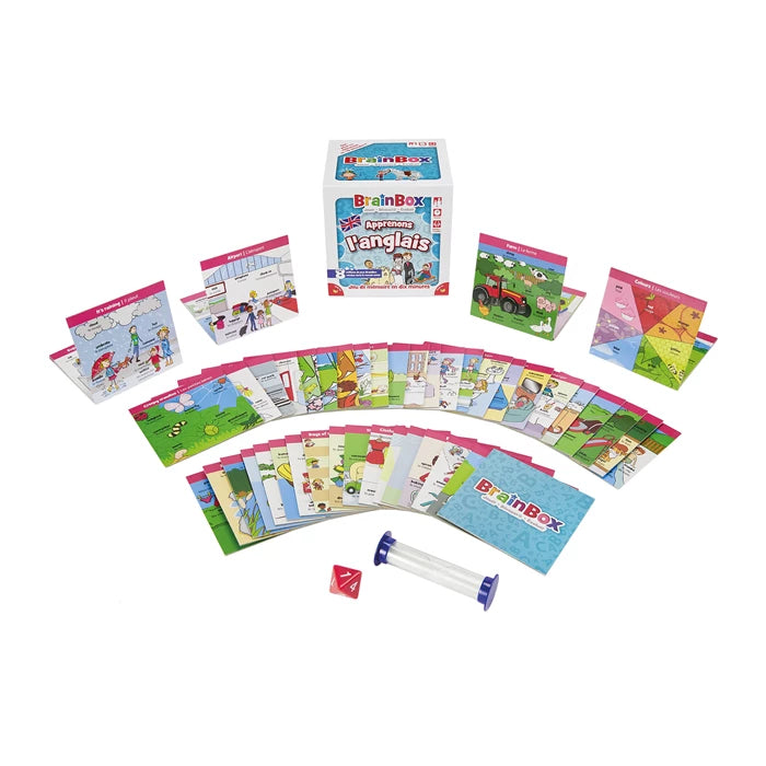 BrainBox est un jeu de mémoire et d’observation qui te mettra à l’épreuve. Que peux-tu mémoriser en seulement 10secondes? Cette édition pour apprendre l’anglais aide à développer son vocabulaire avec des cartes présentant des scènes bilingues.