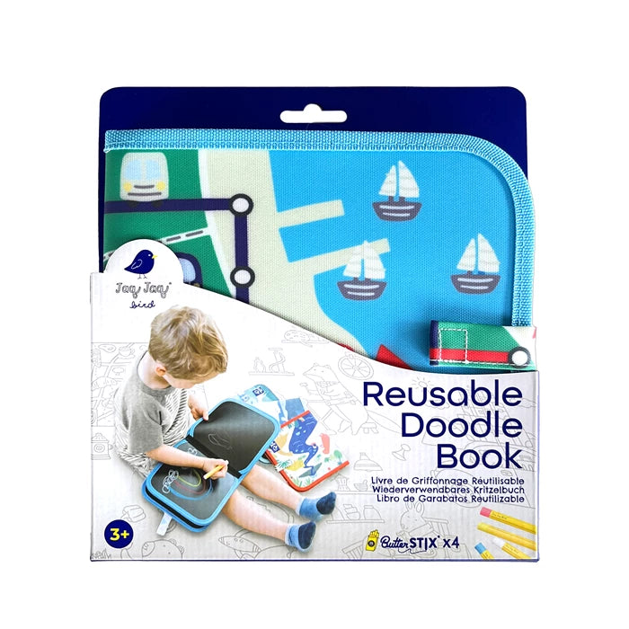 Wiederverwendbares Skizzenbuch mit 8 leeren Seiten, auf denen Kinder ihrer Kreativität mit Butterstix®-Wachsmalstiften oder Wishy Washy-Filzstiften freien Lauf lassen können. Die entstandenen Kunstwerke lassen sich anschließend mit einem feuchten Tuch wieder entfernen.