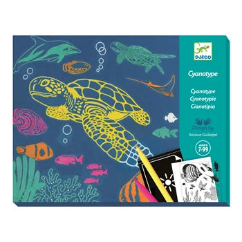 Diese zauberhafte Aktivität ist von einem Verfahren aus der Fotografie inspiriert: der Cyanotypie. Mithilfe von undurchsichtigen Mustern gestaltet das Kind Szenen auf lichtempfindlichem Papier.