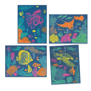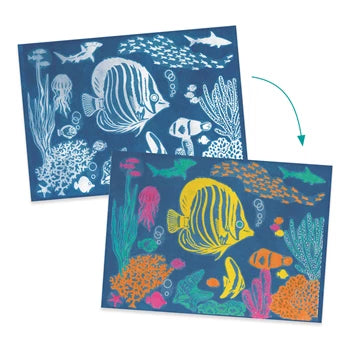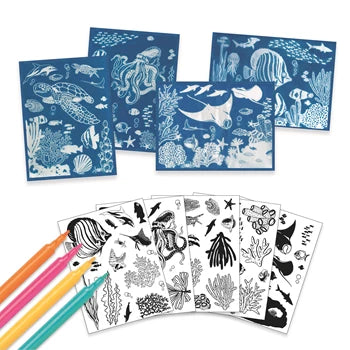 Enthält 4 Stifte, um die 4 Bilder in farbenfrohe Unterwasserszenen zu verwandeln.