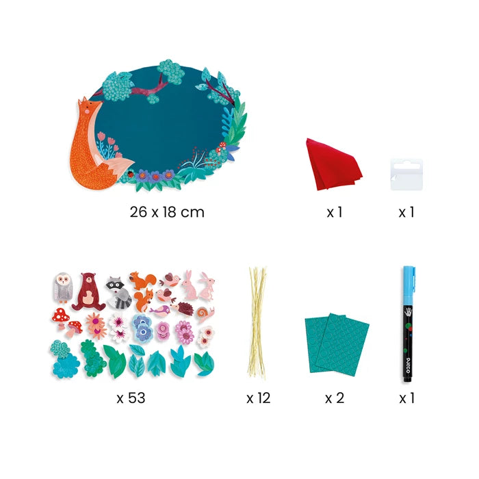 Enthält: 1 Tafel zum Dekorieren, 15 Stiele, über 50 vorgeschnittene Dekorationen, 2 Bögen mit extradicken, haltbaren Aufklebern, 1 Haken, 1 trocken abwischbarer Kreidemarker, 1 Tuch und 1 Blatt mit einer detaillierten Schritt-für-Schritt-Anleitung.