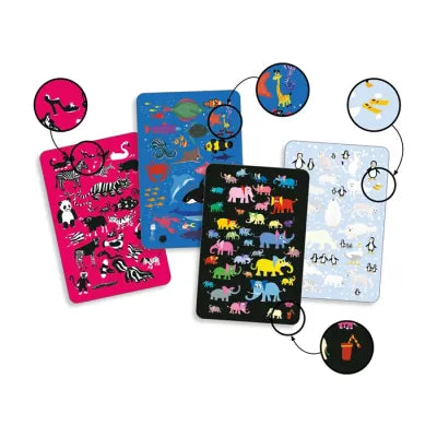 Bei diesem spannenden Spiel musst du am schnellsten die falsche Karte enttarnen. Mit seinem farbenfrohen und ansprechenden Design garantiert dieses Kartenspiel stundenlangen Spielspaß für Jung und Alt.