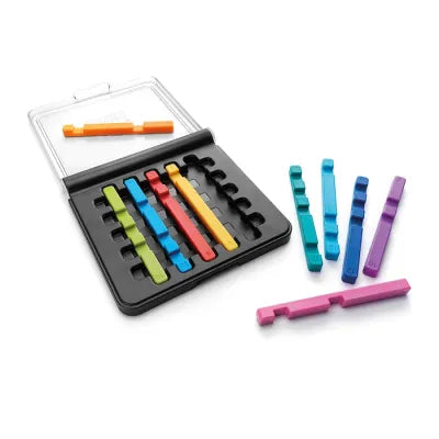 Ein höchst origineller Mechanismus zum Stapeln von 10 Stäbchen, 5 unten und 5 oben, für eine einzige mögliche Kombination. Werden Sie in der Lage sein, sie zusammenzufügen, indem Sie die Kerben von einer gegebenen Ausgangsposition aus perfekt anpassen?