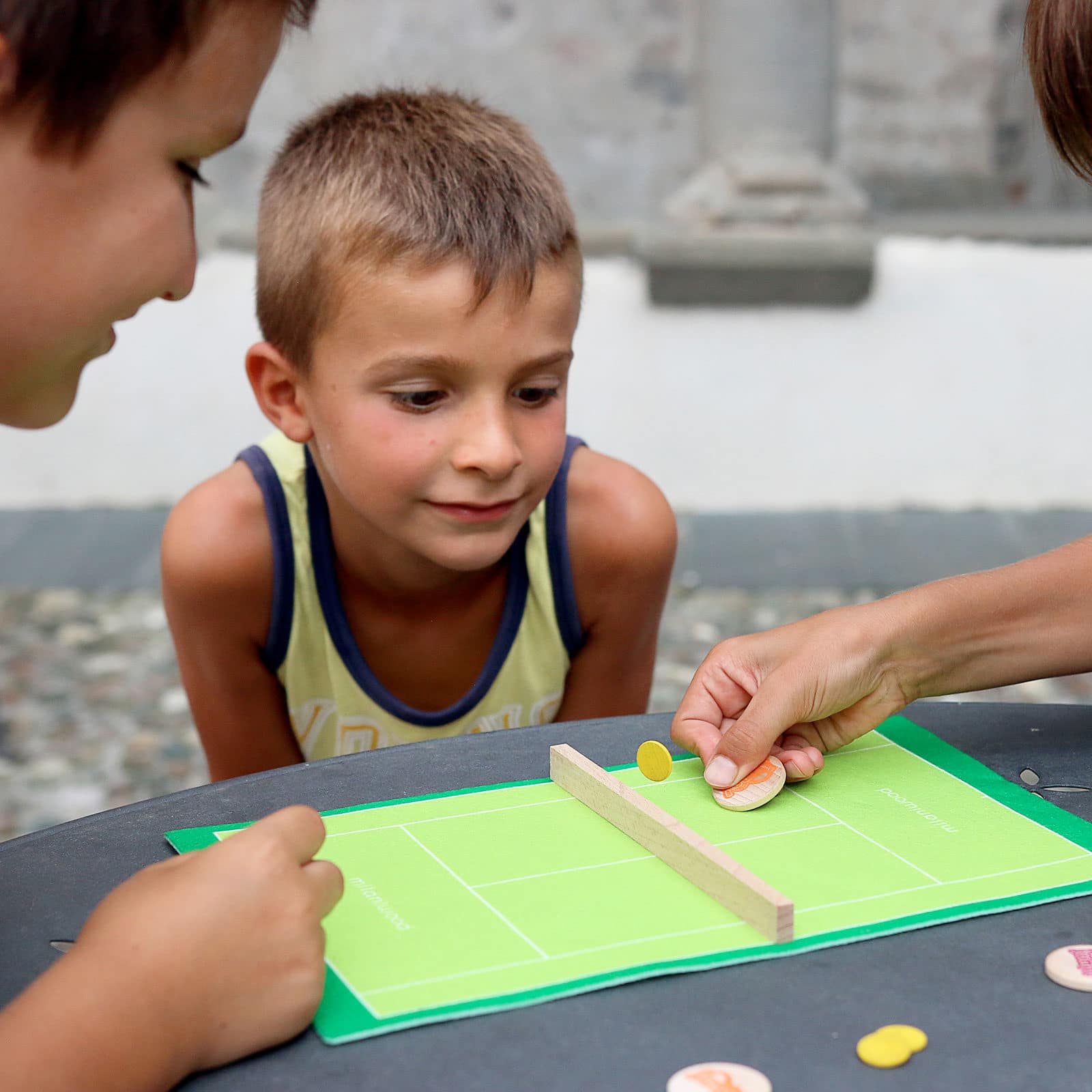 Schlagen Sie Ihre Siegschläge! Garantierter Spielspaß für Groß und Klein. Sicher, umweltfreundlich und mit ungiftigen Farben hergestellt. 100 % Made in Italy. JUMP! Tennisplatz aus Holz aus umwelt- und sozialverträglicher Forstwirtschaft.