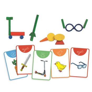 Deine Mission im KelBazar-Spiel ist einfach: Bring die anderen Spieler dazu, mithilfe von Holzformen und Schnur verschiedene Elemente (Tiere, Gegenstände, Pflanzen usw.) zu erraten. Deine Fantasie wird ständig auf die Probe gestellt, und jede Runde hält Überraschungen bereit.