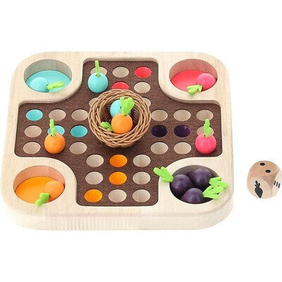 Vilac lässt das Ludo-Spiel mit kleinen Karotten in einem Gemüsegarten wieder aufleben. Ein toller Moment voller Spaß für Jung und Alt!