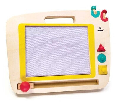Ein lustiges Spielzeug, das uns an unsere Jugend erinnert: das magnetische Zeichenbrett aus Holz!