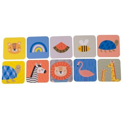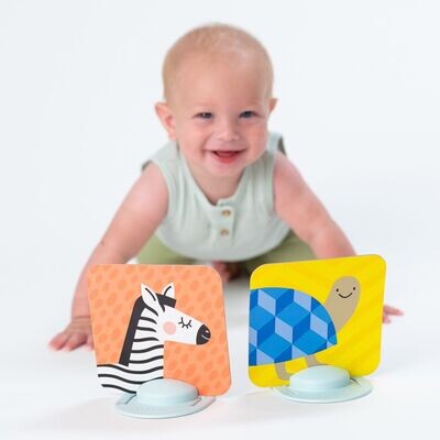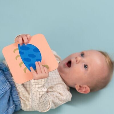 Dieses Set enthält 15 doppelseitige Karten und zwei einzigartige Ständer, um die Karten aufrecht zu halten. Ihr Baby kann mit diesen Karten spielen, während es auf dem Bauch liegt. Das Set wächst mit Ihrem Baby mit, da es drei verschiedene Entwicklungsstufen abdeckt.