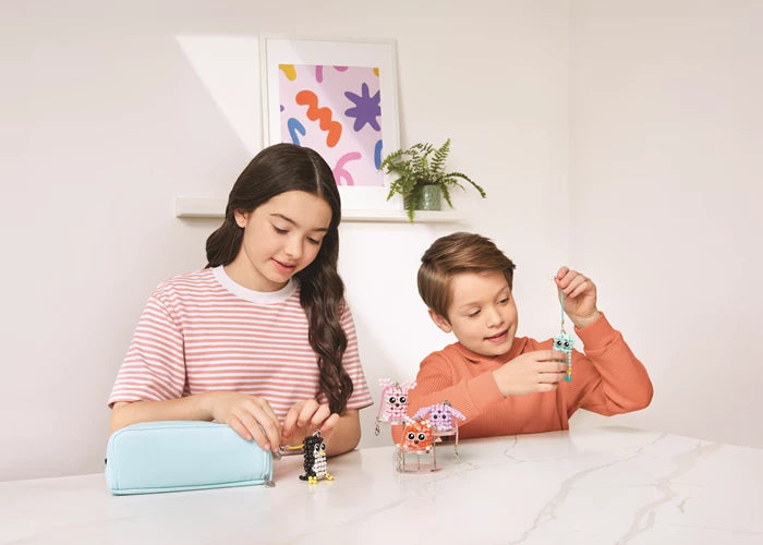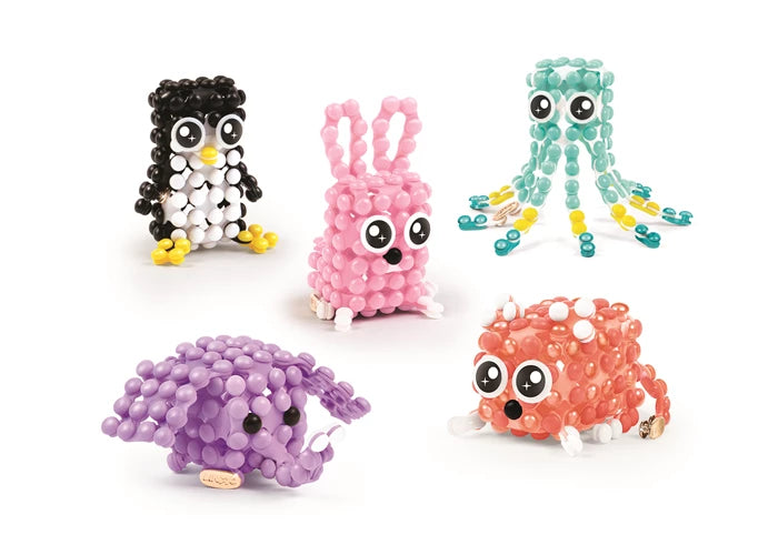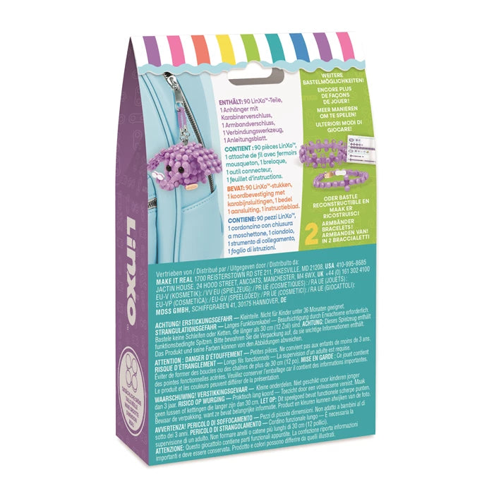 LinXo ist ein Bausystem, mit dem Kinder ihre eigenen, einzigartigen Kreationen gestalten können. Armbänder, Schlüsselanhänger oder Dekorationen – alles ist möglich. Die Kreation kann anschließend nach Belieben auseinandergenommen und neu zusammengesetzt werden. Dieses Set enthält alles, was Sie für die Herstellung eines Tieranhängers oder zweier Armbänder benötigen.