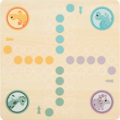 Dank der Augenanzahl auf dem Würfel lernen Kinder spielerisch das Zählen und das Platzieren der Spielsteine schult die Feinmotorik. Ein klassisches Ludo-Spiel im kompakten Format und im Design der Produktlinie „Dino“, das langen Spielspaß für kleine und große Dinosaurier-Fans verspricht.