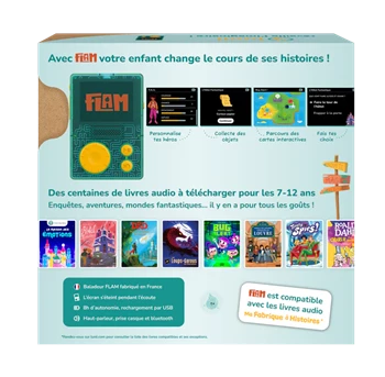 Après Ma Fabrique à Histoires, Lunii continue de mettre l’imaginaire au coeur du développement de l’enfant avec FLAM, le seul baladeur audio interactif pour les enfants dès 7 ans. Grâce à une interactivité encore plus poussée, FLAM conte des aventures, fait participer les enfants et les accompagne dans leur développement en engageant leur capacité d'attention et de réflexion. Des livres audio encore plus interactifs !