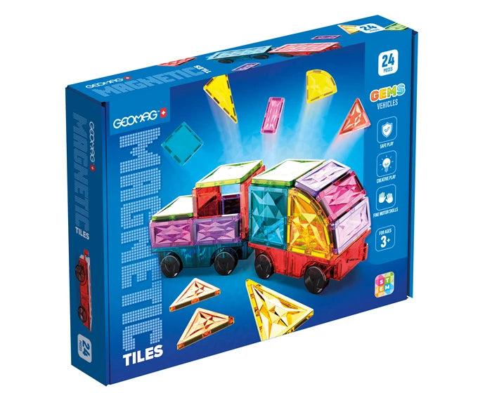 Magnetische Fliesen Edelsteine Fahrzeuge 24 Stück
