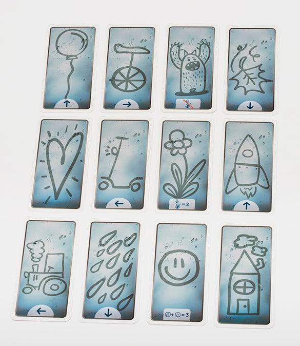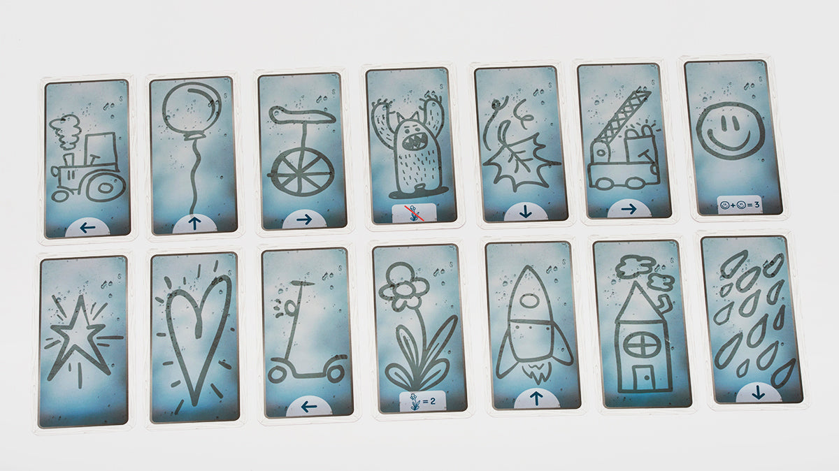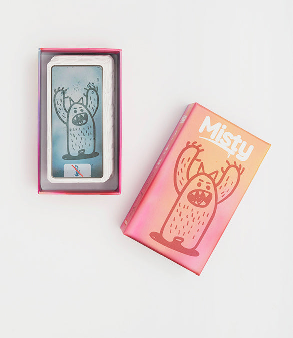 In Misty , die Spieler wählen 12 Karten aus, um ein Fenster voller kleiner Figuren zu bauen, die nur darauf warten, zum Leben zu erwachen und zu entkommen! Achten Sie darauf, sie sorgfältig zu platzieren: Am Ende erhalten Sie nur für die Zeichnungen, die noch intakt sind, Punkte.