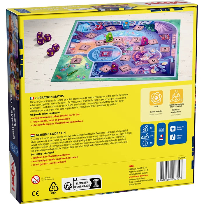 Opération secrète : récupérer votre bande dessinée ! Attention ! Pour désamorcer les pièges, combinez les chiffres. Qui atteindra le coffre en premier ? Un jeu de calcul captivant. Entraînement au calcul mental par le jeu. Règle simple, mise en jeu rapide. Plateau de jeu aux illustrations immersives.