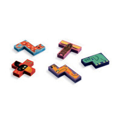 7 Holzfiguren mit lustigen Tieren, 30 Aufgabenkarten, die Ihnen helfen, alle Tiere auf dem Brett zusammenzusetzen, und ... eine gute Portion Denkarbeit, um die fehlenden Tiere zu finden! Für jede Herausforderung gibt es nur eine Lösung.