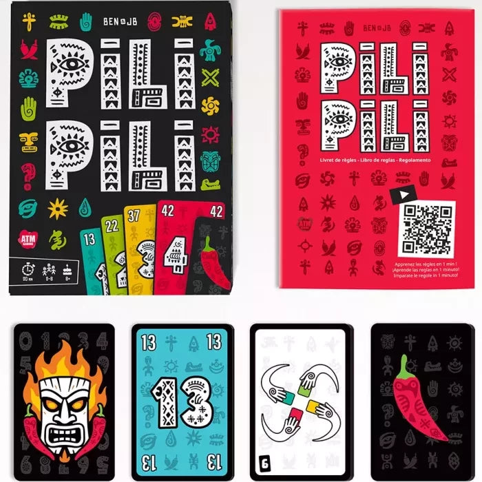 C’est cette dose de piquant qui a inspiré ce jeu de plis drôle, stratégique… et bien épicé. Dans PILI PILI, vous allez parier sur le nombre de plis que vous pensez remporter tout en vous adaptant à des missions qui viendront changer les règles à chaque tour. Parier à l’aveugle, échanger des cartes, éviter des pièges... Les missions vous réservent de sacrées surprises et viendront perturber votre stratégie ! À vous de savoir quand gagner, et aussi quand perdre. Chaque faux pas vous donnera un pili. Trop de pilis et vous perdrez la partie. Soyez chilli, n’ayez pepper et que le meilleur gagne !