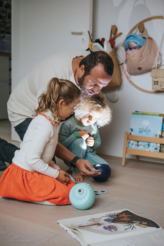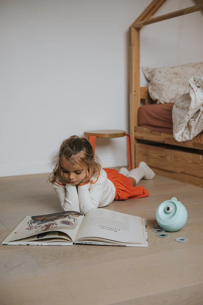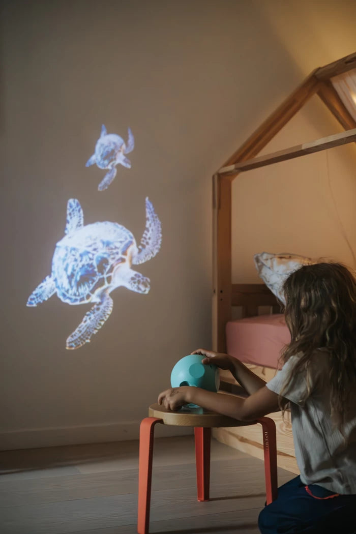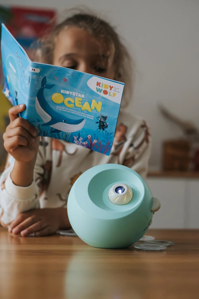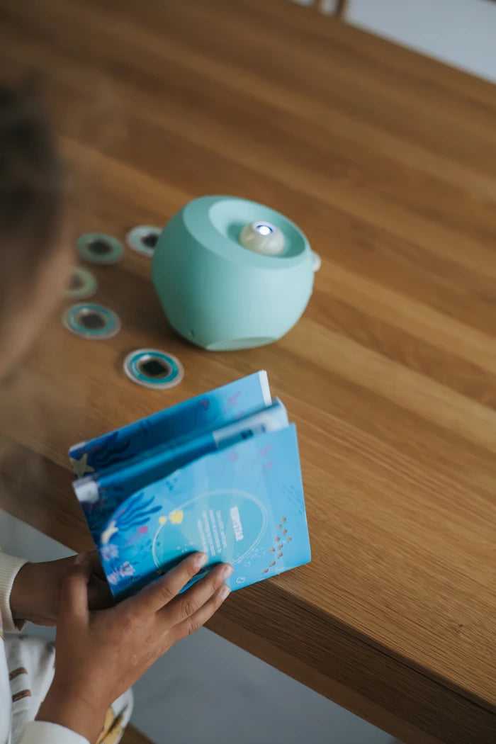 Dieser bezaubernde Projektor verwandelt Wände und Decken dank seiner sechs austauschbaren Discs in eine faszinierende Lichtshow. Mit seinem illustrierten Begleitheft weckt er die Neugier und beruhigt Kinder beim Einschlafen. Eine Einladung zum Entspannen, Träumen und Entdecken … für erholsame Nächte.