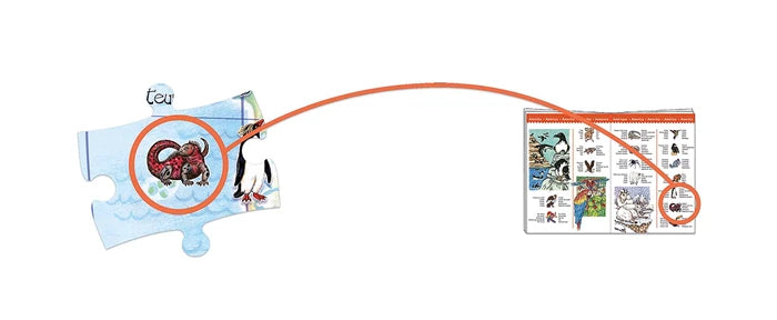 Mit dem Geschichtenpuzzle TIERWELT und dem dazugehörigen Heft erhalten Kinder eine große Weltkarte, auf der sie die Lebensräume verschiedener Tiere finden können. Durch den Vergleich der Musterfragmente mit dem fertigen Bild und das genaue Beobachten der Formen der Ränder entdecken sie, dass die Elemente zusammengehören. Beobachtungsgabe und Konzentration werden gefördert und verbessert. Dem Set liegt außerdem ein Heft mit weiteren Informationen zu Kontinenten, Ländern und Tieren bei.