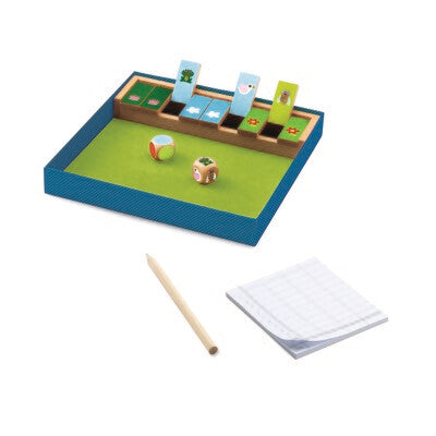Strategiespiel. Das berühmte „Shut the Box“-Spiel mit von Djeco überarbeiteten Illustrationen.