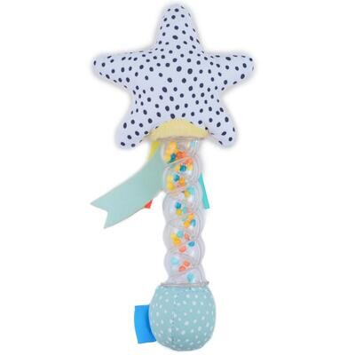 Dieses Sonaglio/dieser Stab stimuliert die Pioggia und erweckt sie mit Perlen in leuchtenden Farben. Es ist sehr angenehm, Babys musikalisch zu unterhalten und dabei die Süße der Pioggia nachzuahmen.