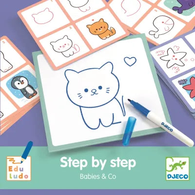 Lernen Sie, wie man Tiere zeichnet, indem Sie Schritt-für-Schritt-Zeichnungen anfertigen und den Vorlagen auf den Karten folgen.