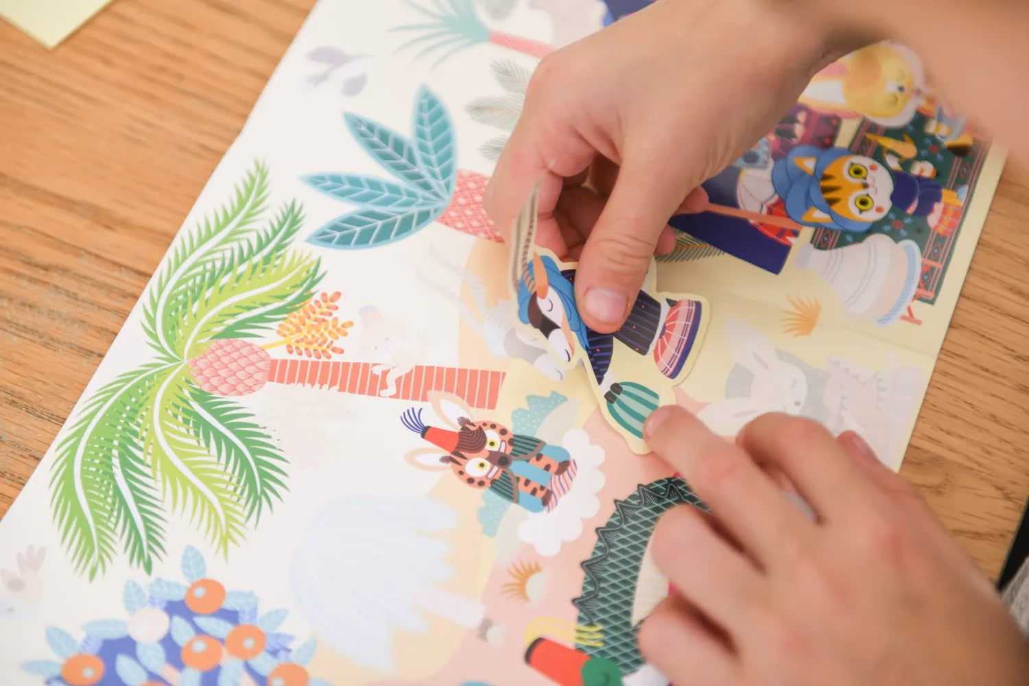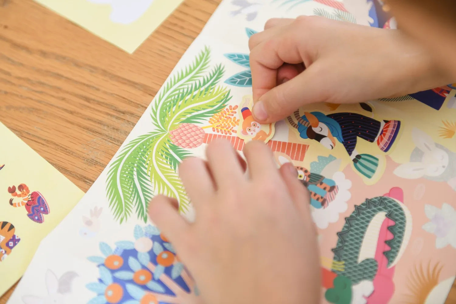 Endlich haben Kleinkinder ihre ersten Sticker, die leicht zu greifen und zu handhaben sind. Sie werden Spaß daran haben, sechs große Bilder zu gestalten, indem sie die großen Sticker auf die Dekoration kleben, und dabei die Tiere der Savanne, des Gartens, der Eisscholle und mehr entdecken. Eine Aktivität, die keine Flecken hinterlässt und alle zehn Finger beansprucht!