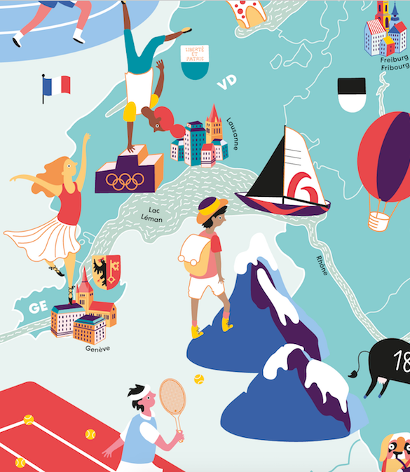 Dieses Puzzle ist von Cartographica Helvetica inspiriert, einem farbenfrohen Atlas der Schweiz für neugierige Köpfe.
