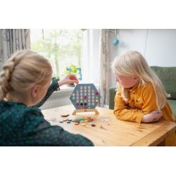 Eine tolle Alternative zum Spiel „Vier Gewinner“. Wer zuerst das 3-Punkte-Muster auf der Karte vervollständigt, gewinnt.