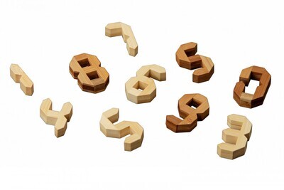 Die Zahlen 0-9 müssen bei diesem Spiel alle in den Rahmen passen. Alle Zahlen müssen flach liegen und dürfen sich weder ganz noch teilweise überlappen, noch über die Ränder des Rahmens hinausragen.