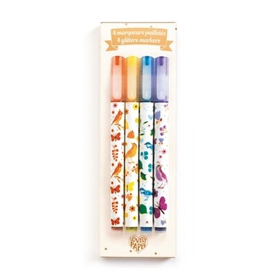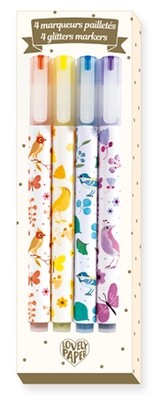 Scoprite i pennarelli glitterati Tinou di Lovely Paper by Djeco, 4 pennarelli con glitter giallo, arancione, blu e viola in una piccola confezione. Il formato perfetto da infilare in borsa o nello zaino quando si parte per il weekend per ravvivare la scrittura.