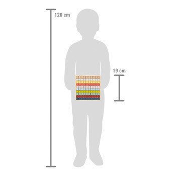 Addizione con numeri fino a 20. Questo ausilio al calcolo adatto ai bambini offre un divertimento colorato nell'eseguire esercizi di addizione, in più è anche bellissimo da vedere! Realizzato in legno 100% certificato FSC®, la tavoletta per l'addizione con dadi per il calcolo è particolarmente robusta e durevole. Una caratteristica molto pratica: per ogni dado c'è un esercizio di calcolo con la relativa soluzione sul lato posteriore, in modo che i bambini possano controllare da soli i risultati del calcolo.