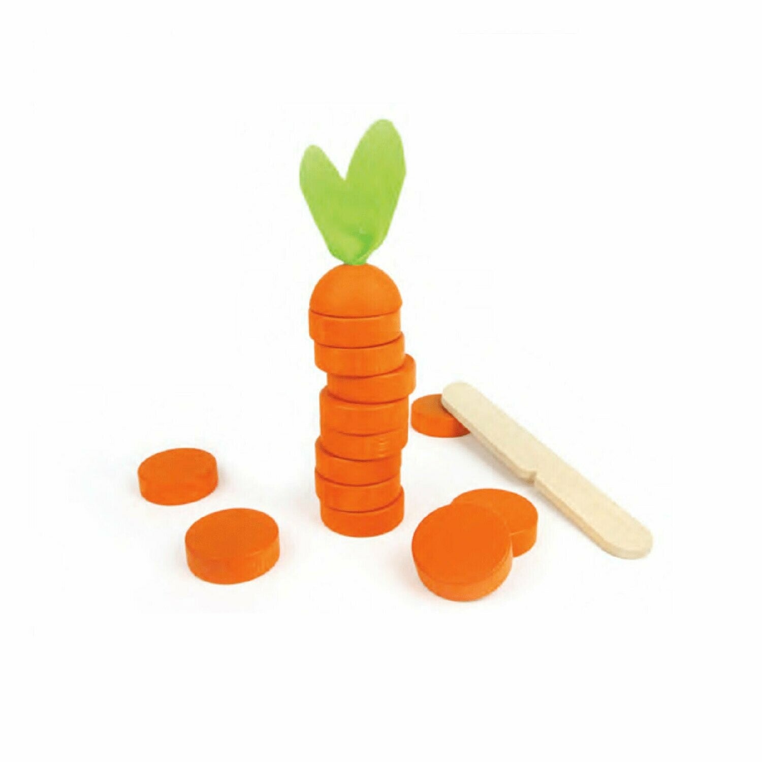 Affettacarota è un avvincente gioco di destrezza in legno per divertire tutta la famiglia, Rondella dopo rondella, vince chi affetta la carota più alta senza farla cadere.