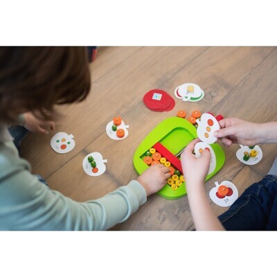 Chi riesce a raccogliere il maggior numero di mele senza che la traversa rossa si muova? Con le carte gioco extra, si possono anche guadagnare punti extra.