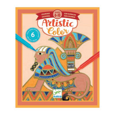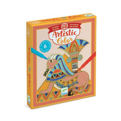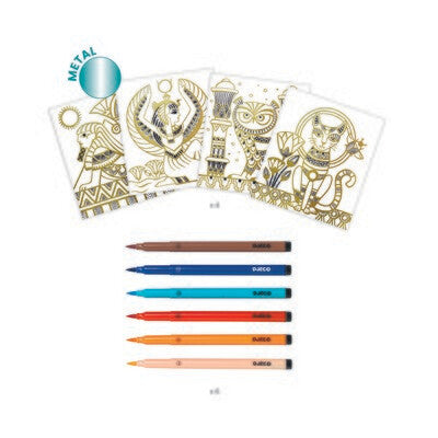 Un set creativo da colorare per bambini dai 6 ai 10 anni sul tema dei faraoni. I contorni dorati in rilievo facilitano la colorazione: guidano la punta del pennarello per evitare di mescolare i colori!