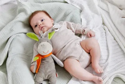 Ideale per quando si è in giro: aggancia il ciuccio o altri accessori per non perderli. Il foulard rimovibile può essere utilizzato come fermaglio per il ciuccio. Un regalo per la nascita superbo e morbido. Materiale: poliestere. Dimensioni: circa 26 cm di altezza.