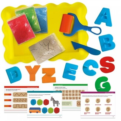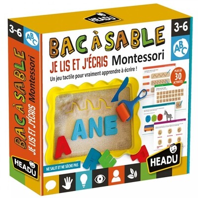 Un jeu tactile pour vraiment apprendre à écrire ! Le Bac à sable Montessori permet d’engager l’enfant dans des activités de préécriture puis d’écriture de lettres, de mots et de chiffres. Le jeu contient du sable de différentes couleurs qui ne sèche et ne salit pas, des moules des lettres de l’alphabet ainsi qu’un manuel pédagogique proposant des exercices amusants
