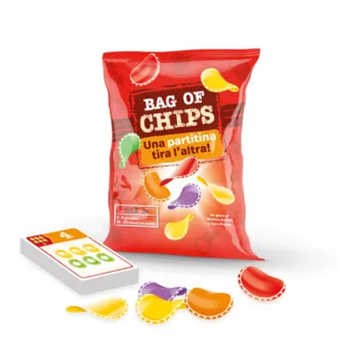 Un party game “Push Your Luck” in cui prenderete decisioni cruciali per accumulare più punti possibile alla fine di ogni round. Ma attenzione: se sarete troppo avidi, avrete molto da perdere! Pescate le patatine, eliminate gli obiettivi troppo difficili e completate gli obiettivi rimanenti per raggiungere la vittoria! Il gioco si svolge in una serie di round. In ogni round si effettuano 4 turni di pesca di patatine dal sacchetto. Le “patatine”, di 5 colori diversi, vengono rivelate a tutti i giocatori. Dopo ogni pescata, si scartano dalla mano alcune carte obbiettivo (tutti gli obbiettivi sono collegati al numero e al colore delle patatine sul tavolo) che vengono ritenute troppo difficili. Alla fine della quarta pescata, si contano i punti degli obiettivi completati, ricevendo le relative ricompense e si sottraggono eventuali punti di obbiettivi completati ma scartati. Se uno dei giocatori arriva a 4 o più premi, vince la partita.