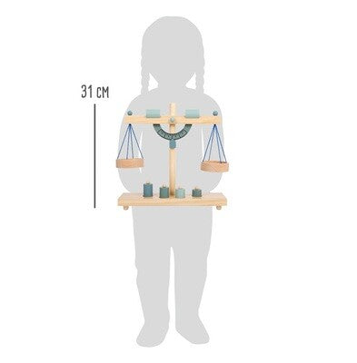 Pesare come al mercato settimanale! Con questa robusta bilancia in legno, i piccoli commercianti hanno a portata di mano gli strumenti giusti quando pesano il cibo per i loro clienti nel negozietto o al bancone del mercato per bambini. Quattro pesi diversi aiutano a determinare il peso e due contrappesi regolabili vengono utilizzati per regolare la bilancia. In questo modo i bambini si fanno una prima idea del peso e dell'equilibrio in modo giocoso.