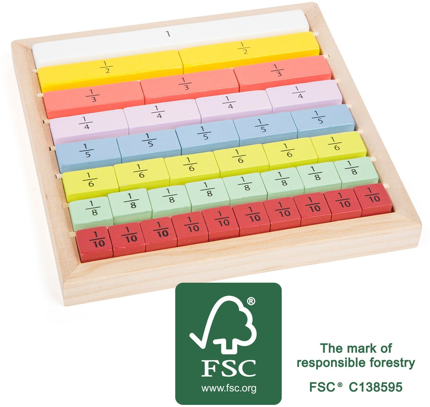 Come ci si diverte coi numeri dai colori vivaci! Questo quadrato colorato in legno certificato FSC® 100% sprona, giocando, ad esercitarsi con il calcolo delle frazioni. Questo gioco di calcolo permette di scoprire il mondo dei numeri, ogni volta come se fosse la prima.