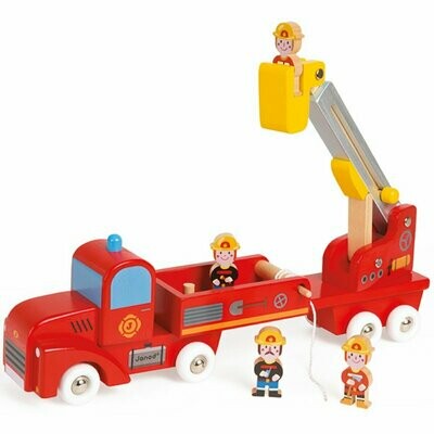 Presto, fuoco! Immergiti nell'entusiasmante mondo dei pompieri con questo vero camion dei pompieri dotato di scala girevole e telescopica con cesto e manichetta antincendio. Include 4 pompieri.