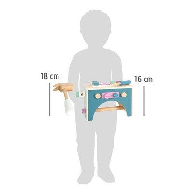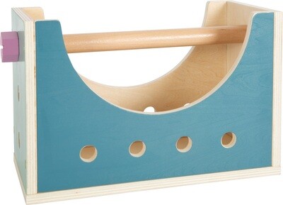 Con questa stabile cassetta degli attrezzi in legno dal design scandinavo, i piccoli costruttori avranno sempre a portata di mano la loro attrezzatura da professionisti! Dotati di quattro attrezzi e di tutti gli accessori possibili si può subito iniziare a costruire. Se capovolta, la cassetta degli attrezzi fa una bella figura anche come mini banco da lavoro! L'impugnatura e gli accessori possono essere montati sulla cassetta degli attrezzi: ciò assicura spazio a sufficienza e ulteriore divertimento. Con morsetto!