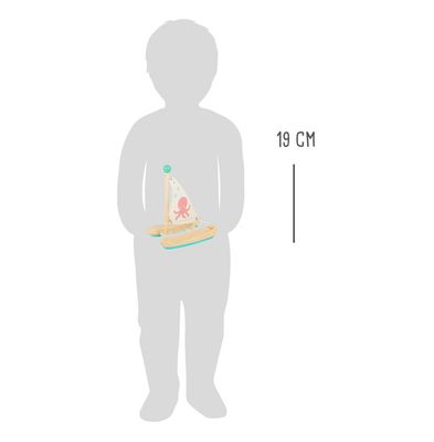 Adornata con un polipo dal design adatto ai bambini, questa barca sprona i più piccoli ad un gioco di ruoli fantasioso. Un enorme divertimento per piccoli capitani! I giochi acquatici in legno rappresentano l'alternativa sostenibile ai giocattoli per la vasca da bagno in plastica o agli animali di gomma! Così il divertimento coi giochi di ruolo in alto mare è garantito. La barca in legno è piccola e maneggevole ed entra senza problemi in ogni borsa da piscina!