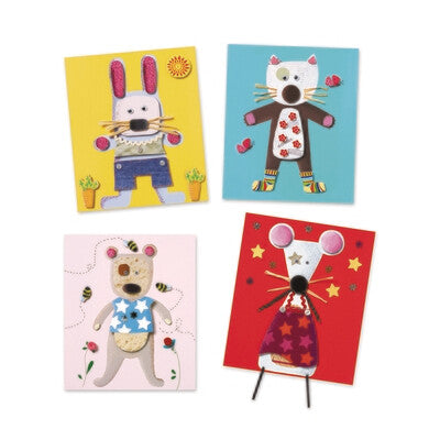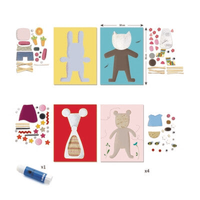 Questo set contiene 4 diversi modelli fatti di cartone extra spesso con elementi adesivi facili da maneggiare. Questi modelli possono essere aggiunti e decorati a piacere.