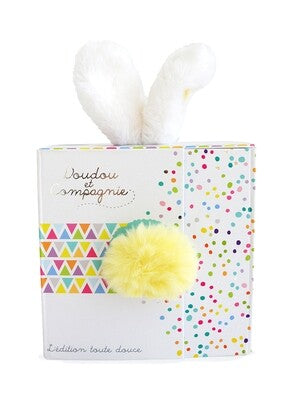 Un morbido pompon giallo e 2 orecchie bianche che spuntano da una bella scatola regalo raffinata SORPRESA!!! Coucou Lapin è un'adorabile pallina di tenerezza. Un bel peluche e un regalo originale.