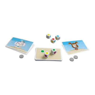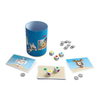 Con un po' di fortuna sui dadi, raccogliete dolcetti multicolori per attirare il maggior numero possibile di cani. Vince il giocatore con il maggior numero di carte cane.
