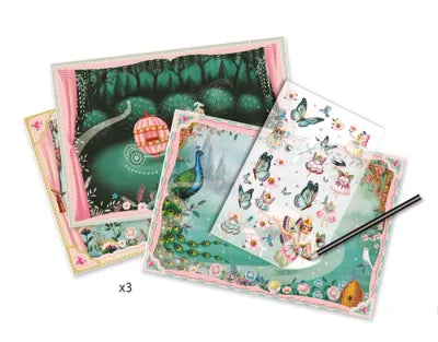 Con questo set di decalcomanie di Djeco, i bambini possono dare libero sfogo alla loro immaginazione e creare le loro prime storie personali. Il set comprende 3 modelli e più di 100 immagini, con i modelli che offrono diversi mondi a tema. I bambini possono posizionare le decalcomanie a piacimento sui modelli. È sufficiente strofinare l'immagine con una matita per trasferirla sul modello.