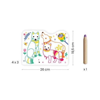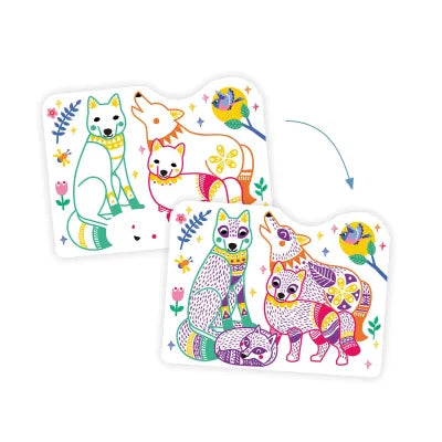 Con una grossa matita, il bambino può colorare dappertutto facendo però comparire il colore solo su alcuni punti. Magia!