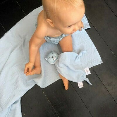 Morbidissimo grazie al cotone organico GOTS e con colori moda, il doudou a doppia garza è perfetto come primo doudou da coccolare per il tuo piccolino.