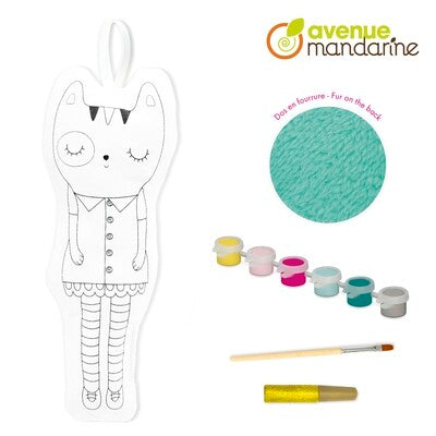 Include: 1 animale in cotone stampato da 24 cm - 1 pennello - 6 flaconi di colore acrilico - 1 tubetto di glitter