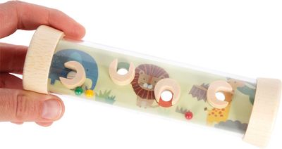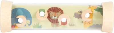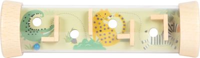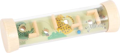 Un gioco di pazienza/labirinto di palline su due lati, che si può trasformare in un giocattolo per il ritmo e sonaglio! Il labirinto di palline nei tubi robusti e trasparenti promuove in particolar modo le abilità motorie dei piccoli genietti, quando le 4 palline di legno che rotolano all'interno vengono guidate abilmente attraverso le sfide del labirinto. A seconda del lato, due diversi labirinti in legno aspettano di essere esplorati. Il design grazioso e adatto ai bambini con animali selvatici quali zebra, giraffa, leone, coccodrillo ecc. rende inoltre il gioco un vero punto forte esteticamente e stimola la fantasia. Il legno dalla sensazione piacevole al tatto e la dimensione adatta alle mani dei bambini rendono questo gioco di pazienza un bellissimo passatempo. Ideale da usare a casa, in viaggio o come pensierino.